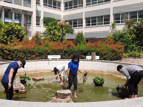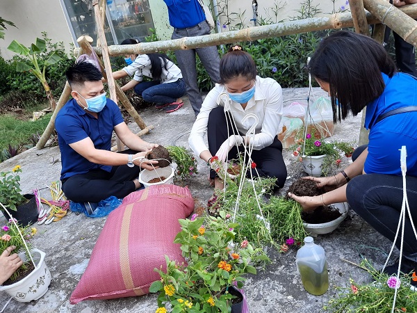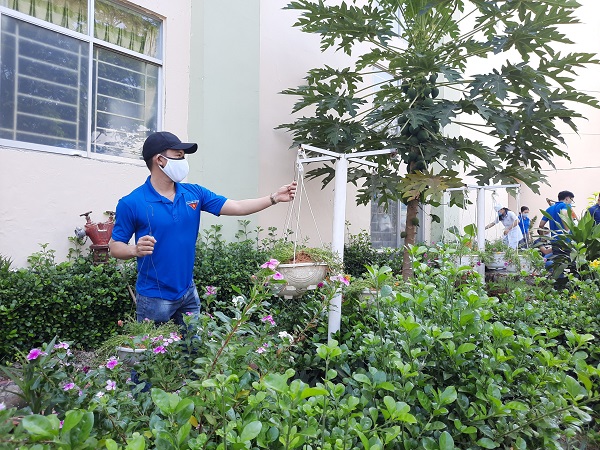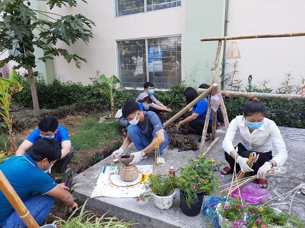 Công trình “Vườn hoa - Hồ nước - Tiểu cảnh” được thực hiện dựa trên ý tưởng của đoàn viên gồm: thả cá, trồng hoa súng, thả rong và bèo hoa ở 2 hồ nước, trồng hoa, tiểu cảnh tại khuôn viên khoa Dược; xây dựng “góc quê” với chiếc cầu tre, gánh hoa, vật dụng sinh hoạt hàng ngày bằng tre… giáo dục ý thức giữ gìn nét đẹp truyền thống của vùng nông thôn Việt Nam cho đoàn viên, nhân viên tế. Góp phần cải tạo cảnh quan trong khuôn viên bệnh viện, xây dựng môi trường gần gũi, thân thiện với thiên nhiên.