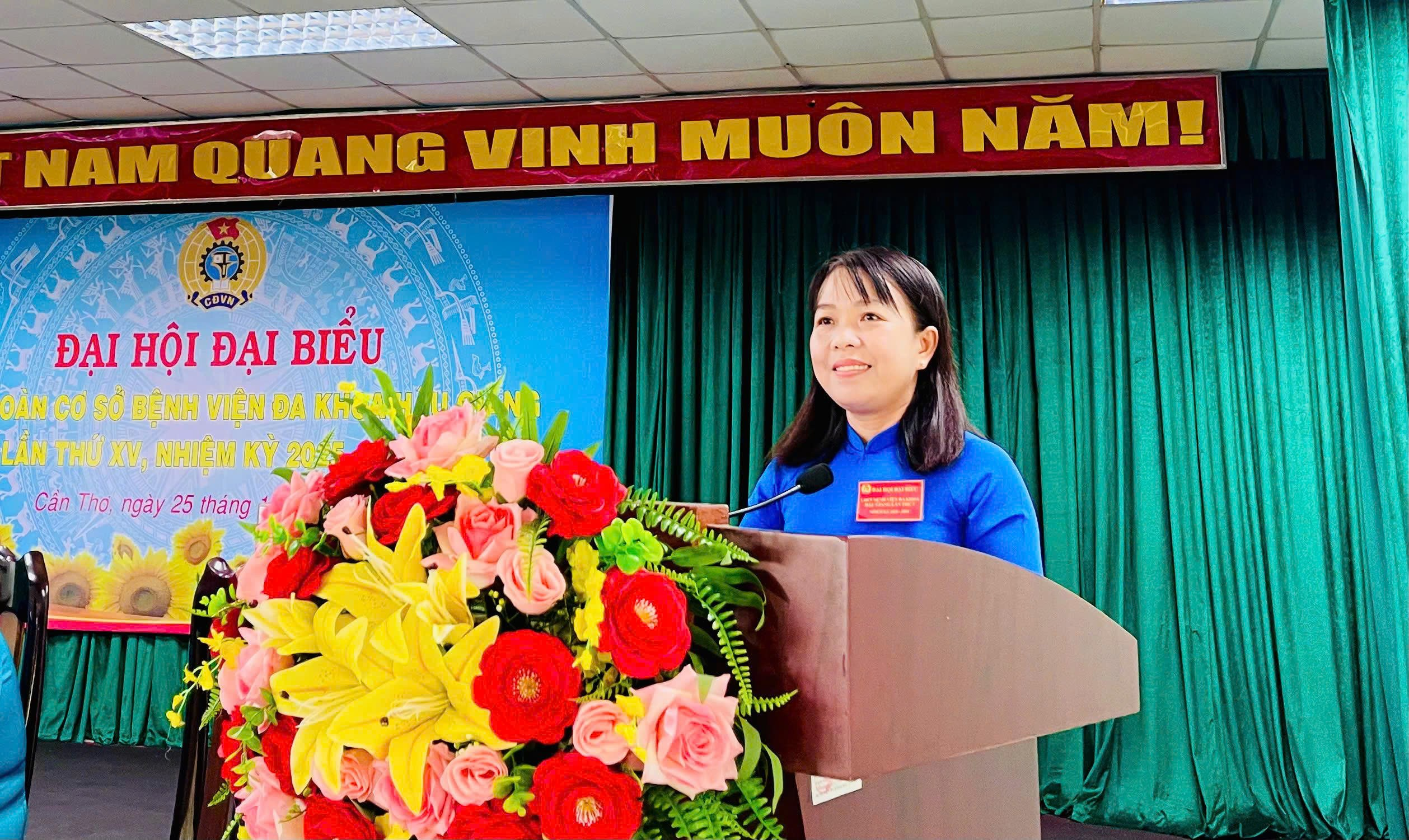 Phát biểu chỉ đạo, đồng chí Lê Thị Sương Mai - Chủ tịch LĐLĐ Tp.Cần Thơ biểu dương nỗ lực của Công đoàn cơ sở, đề nghị tiếp tục phát huy vai trò đại diện, tăng cường ứng dụng công nghệ, gắn phong trào thi đua với chuyên môn và nghiên cứu khoa học, đồng thời nhấn mạnh mỗi đoàn viên là “đại sứ y đức” góp phần xây dựng bệnh viện ngày càng phát triển.