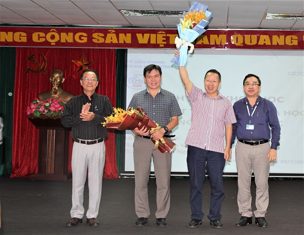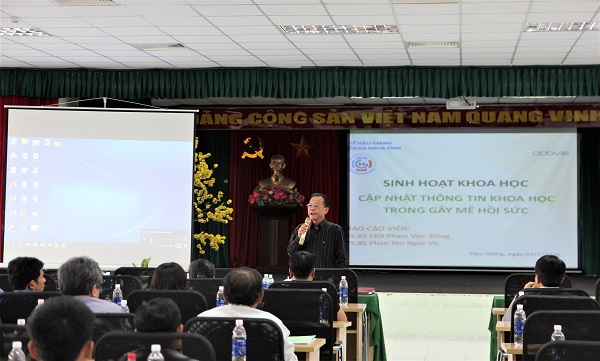 TS.BS.CKII. Phạm Văn Đông - Trưởng Khoa GMHS Bệnh viện Chợ Rẫy; TS.BS. Phan Tôn Ngọc Vũ - Trưởng khoa GMHS Bệnh viện Đại học Y Dược Thành phố Hồ Chí Minh đến dự và báo cáo chuyên đề. BSCKII Nguyễn Thành Phúc, Giám đốc BVĐK tỉnh Hậu Giang chủ trì Hội thảo.