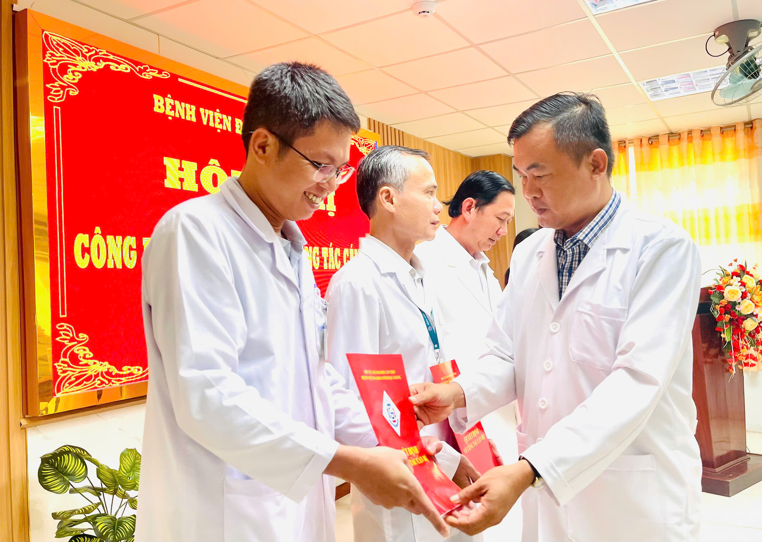 Phát biểu tại buổi lễ, Bs.CKII Trần Thanh Giang - Phó Giám đốc phụ trách điều hành bệnh viện chúc mừng các đồng chí được tiếp tục tín nhiệm và giao trọng trách, đồng thời bày tỏ tin tưởng các đồng chí sẽ tiếp tục phát huy năng lực, tinh thần đoàn kết và sáng tạo, góp phần xây dựng bệnh viện ngày càng phát triển.