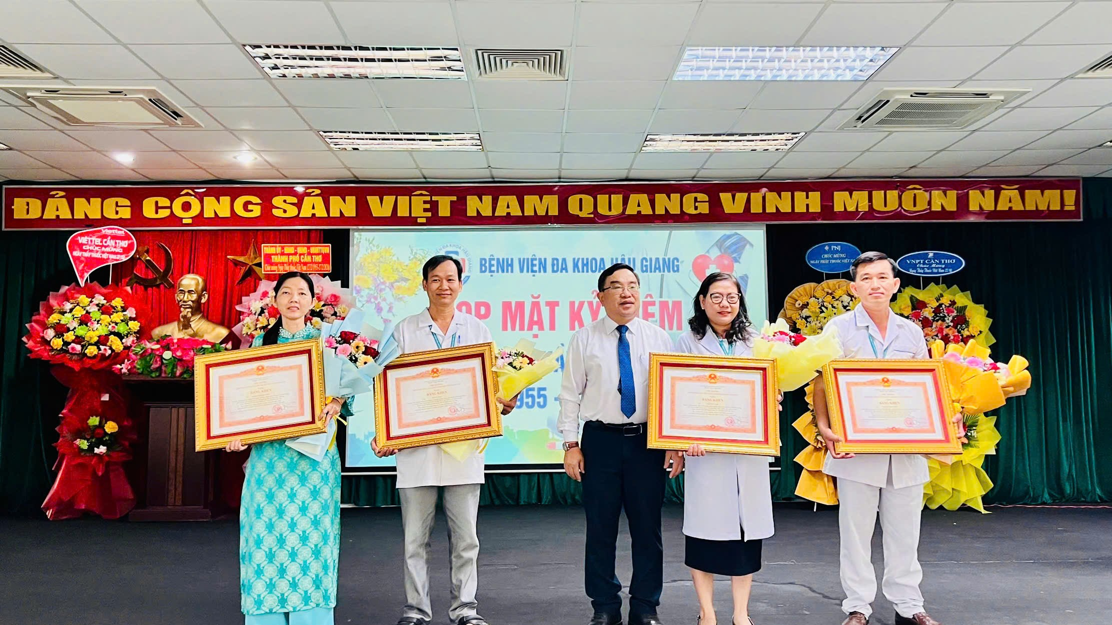 Nhân dịp này, bệnh viện đã công bố và trao các quyết định khen thưởng của cấp trên cho các tập thể, cá nhân có thành tích tiêu biểu trong công tác chăm sóc và bảo vệ sức khỏe nhân dân. Cụ thể, Thủ tướng Chính phủ tặng Bằng khen cho 04 cá nhân có thành tích xuất sắc; Bộ Y tế tặng Kỷ niệm chương “Vì sức khỏe nhân dân” cho 32 cá nhân; Sở Y tế thành phố Cần Thơ công nhận 09 tập thể hoàn thành tốt nhiệm vụ; 88 cá nhân hoàn thành tốt nhiệm vụ, 493 cá nhân đạt danh hiệu lao động tiên tiến và 71 cá nhân đạt danh hiệu Chiến sĩ thi đua cơ sở.