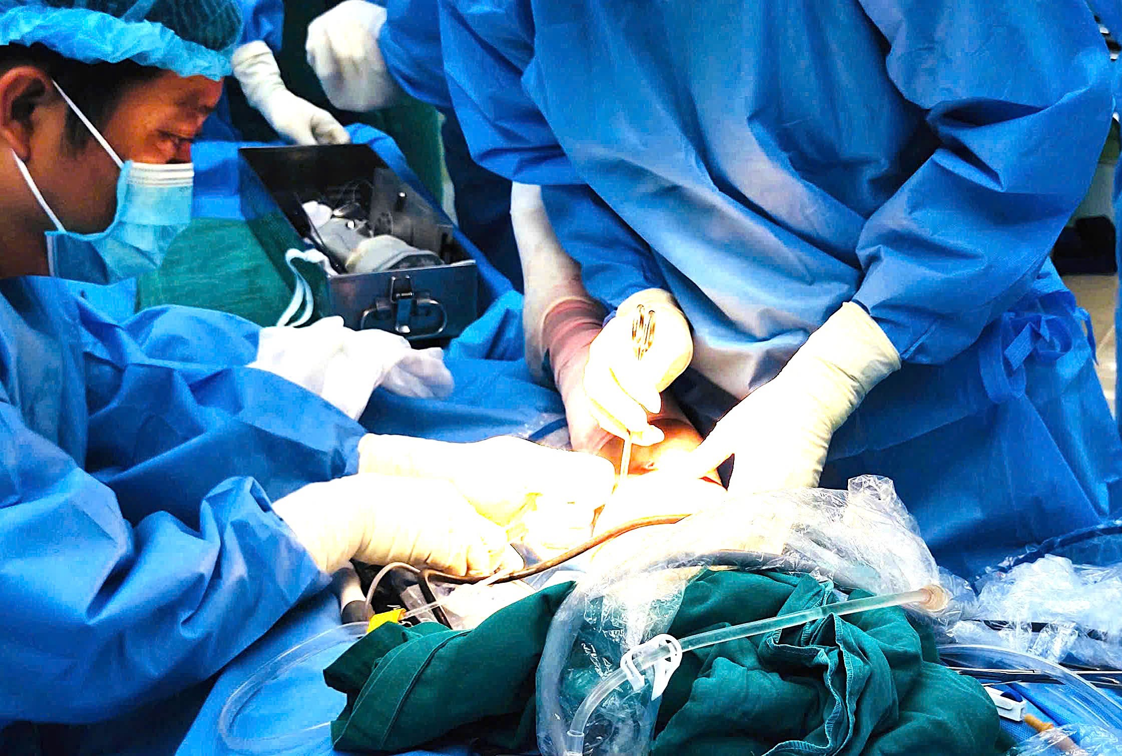 Ca phẫu thuật được thực hiện dưới sự hỗ trợ chuyên môn của Bs.CKII Nguyễn Tâm Từ - Trưởng Khoa Phẫu thuật Nội soi khớp và cổ bàn chân, cùng các chuyên gia đến từ Trung tâm Chấn thương chỉnh hình - Bệnh viện Đa khoa Trung ương Cần Thơ và ê - kíp phẫu thuật chuyên sâu của Khoa Ngoại Chấn thương - Bệnh viện đa khoa Hậu Giang.