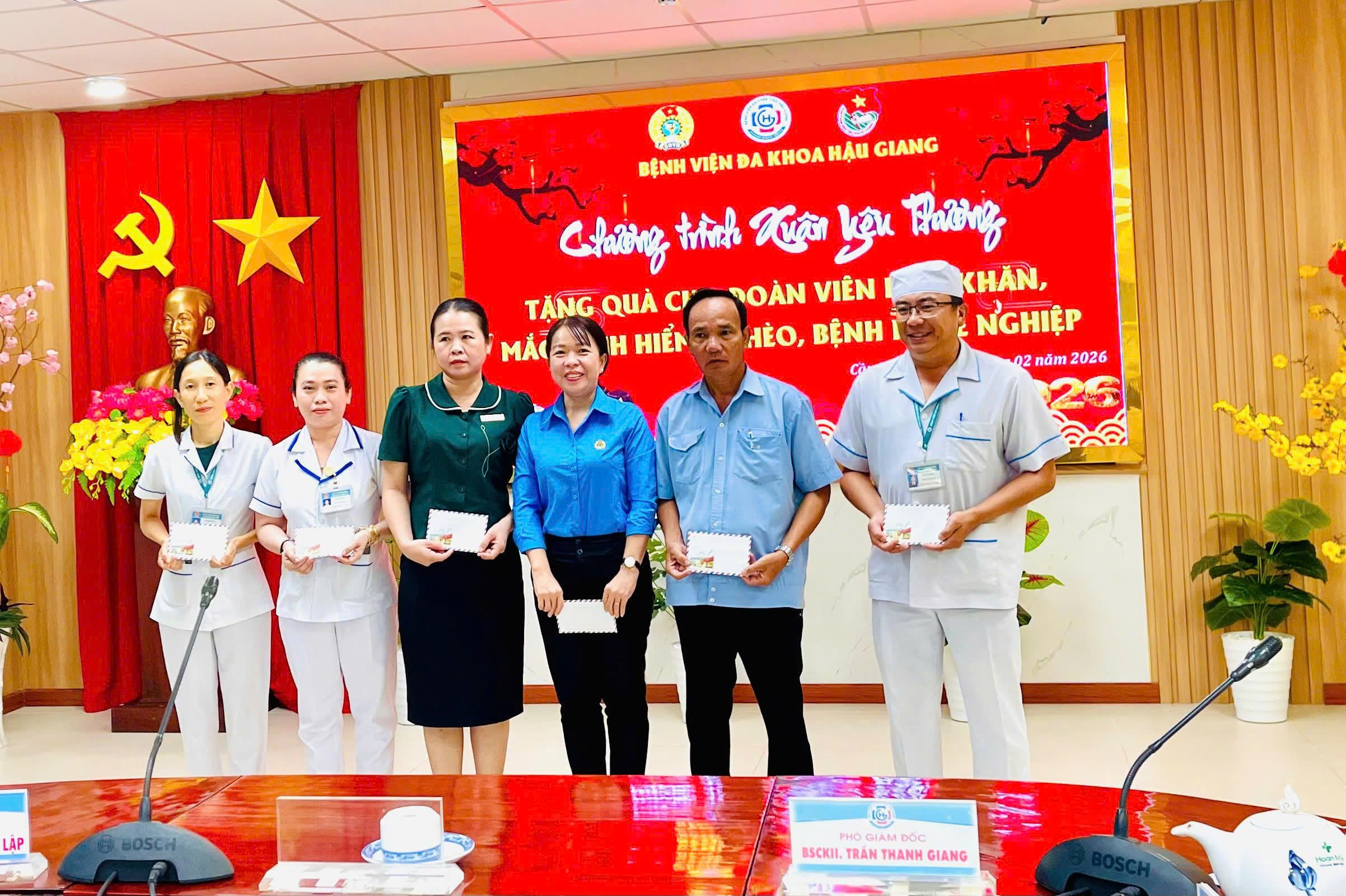 Tại chương trình, Công đoàn cơ sở bệnh viện đã trao quà Tết cho 06 đoàn viên mắc bệnh hiểm nghèo, bệnh nghề nghiệp và 32 đoàn viên có hoàn cảnh khó khăn đang công tác tại các khoa, phòng. Hoạt động thể hiện sự quan tâm, chăm lo thiết thực của tổ chức Công đoàn đối với đoàn viên, người lao động, góp phần động viên tinh thần, giúp đoàn viên an tâm công tác, đón Tết Nguyên đán Bính Ngọ năm 2026 vui tươi, ấm áp.