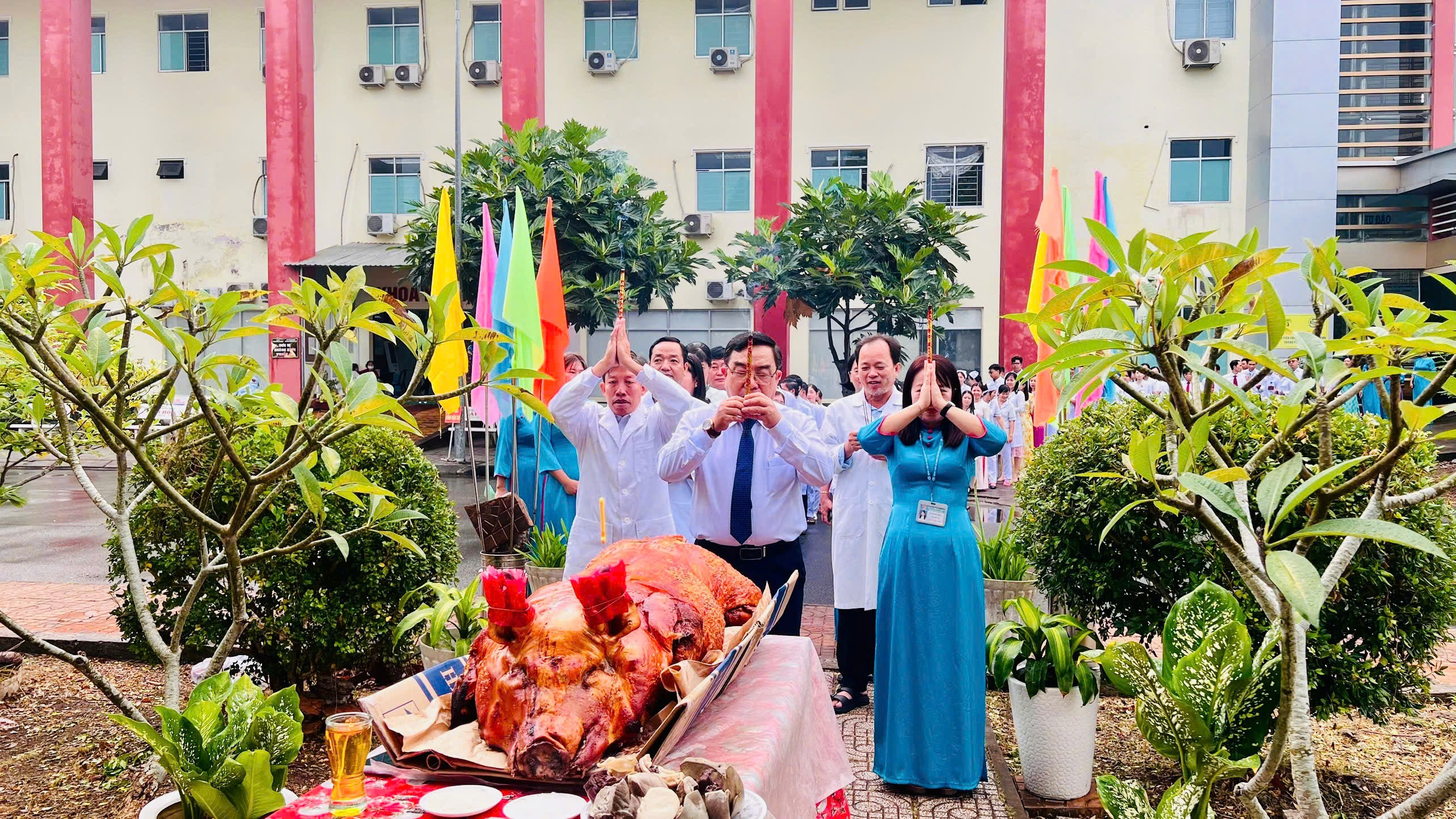 Kết thúc chương trình, Ban Giám đốc cùng lãnh đạo các khoa/phòng và nhân viên y tế đã thành kính dâng hương tưởng niệm Danh y Hải Thượng Lãn Ông Lê Hữu Trác và Chủ tịch Hồ Chí Minh, bày tỏ lòng biết ơn sâu sắc đối với các bậc tiền nhân đã đặt nền móng và dẫn dắt sự nghiệp y học nước nhà.